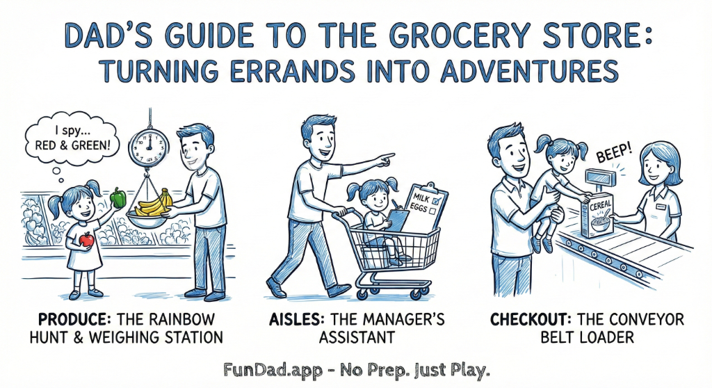 For many fathers, the weekly food run is a dreaded necessity. Here is your battle plan for engaging kids in errands and actually enjoying the trip.