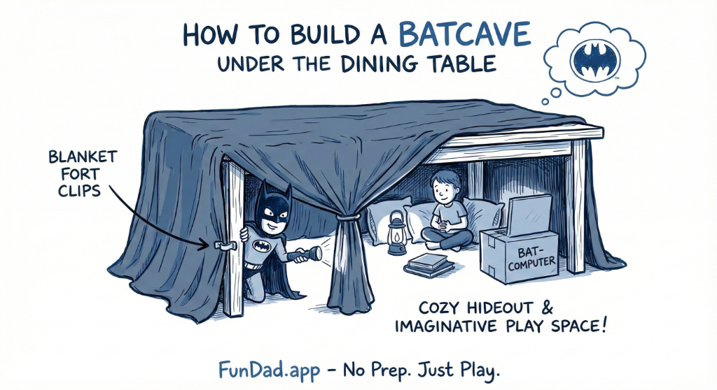 Transform your dining table into Gotham City’s most secure secret hideout. A 10-minute DIY guide for dads.