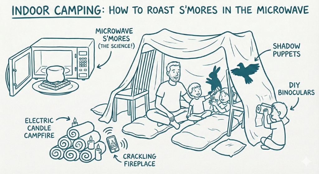 A guide to hosting the ultimate living room campout, complete with the essential culinary skill: the microwave s'mores recipe.