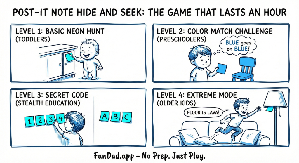 Turn a single pad of sticky notes into an hour of quiet (or chaotic) entertainment. From toddlers to big kids, here's how to play.