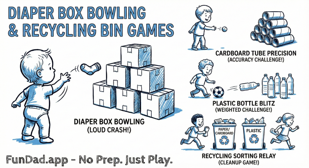 Turn your weekly waste into a carnival of upcycled toddler activities with these instant, low-prep recycling bin games.