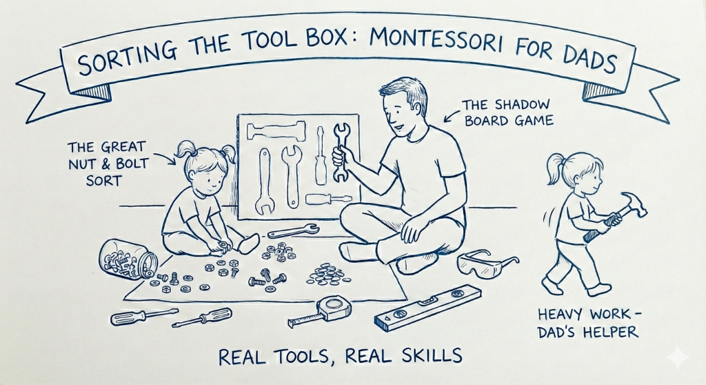 Turn a messy junk drawer or a toolbox into a goldmine of cognitive sorting games and bonding moments.