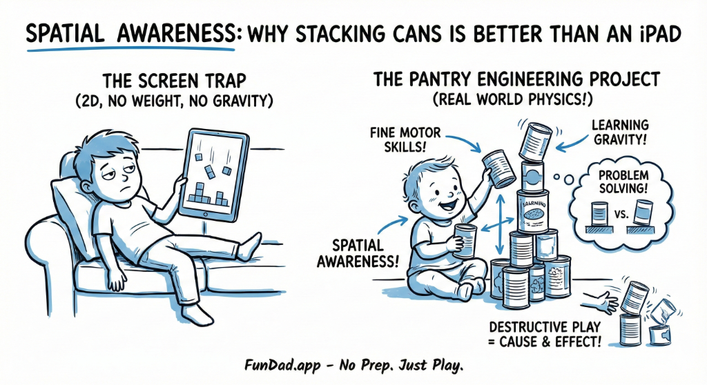 Discover why a simple pantry raid rivals the most expensive tablet for your child's brain development. A deep dive into spatial awareness and motor skills.